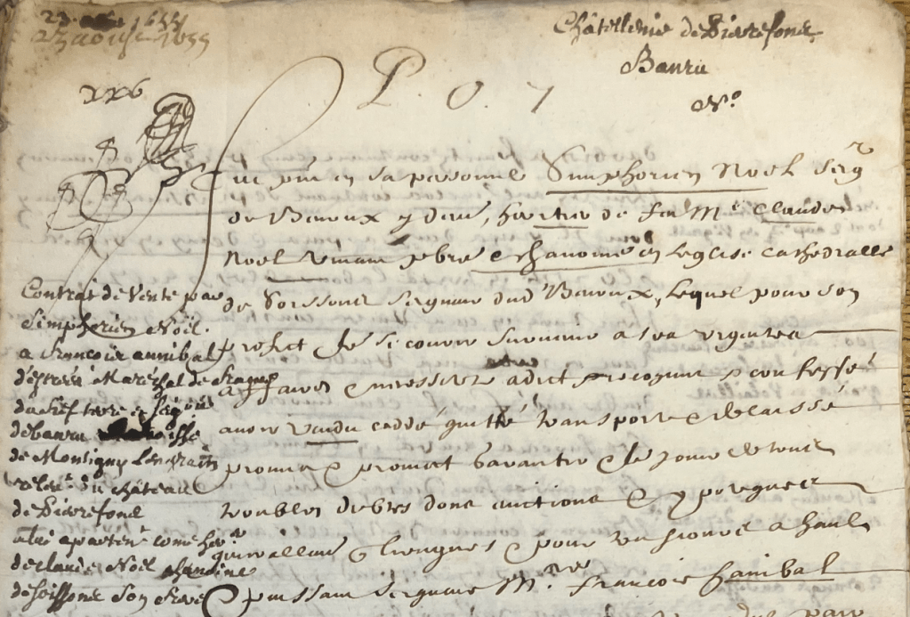 On ignore pourquoi l’aveu de 1656 est au nom de Symphorien Noël alors qu’il avait déjà vendu le fief à Marc-Cyrus de Brion.