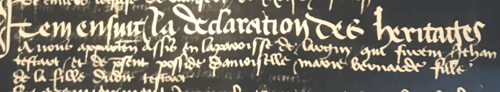 ANDREU Pierre / ASSET Guillaume / ASSET Jacques / BOUCHARD Abel / BOUCHARD Antoine / BOUCHER Arnould / BOULLEZ Pierre / BOUVIER Anthoine / CACQUEREL Abel (les hoirs) / CAUCHEME Hector / CARLIER Jacques / CARTIER Jehanne / CAUCHEME Hector / CHARDET Loys / CHASTELLAIN Michel / CLAPPIER Jacques / COUSTART Loys / CRESPIN Gilles / CRESPIN Martin / DE BRENOT Jehan le jeune / DE BRENOT Jehan l’aîné / DE BRENOT Martin / DE BREUL Jehan / DE LA BOUE Jehan / DE CACQUERELLE Mahiette / DE FAULMONT Estienne / DE FAULMONT Jehan / DE LA PLACE Noël (les héritiers) / DE LA PLACE Jehan / DE LA PLACE Louise (épouse de Nicolas MOUTONNET) / DE LA PLACE Martin / DE LA PLACE Pierre (les hoirs) / DE LA RUELLE Andreu / DELETTRES Adrien / DE MOMMACQUE Gilles / DELETTRE Adrien / DE MELUN Jacques / DEPREE Blaise / DEPREE Claude / DE PREE Guillaume (les héritiers) / DE PREE Philippe / DESMEZIERE Henry / DES OULCHES Antoine / DES OULCHES Georges (les héritiers) / DES OULCHES Richard (les héritiers) / DESPREZ Antoine (les héritiers) / DE TAU Antoine / DE VAULX Raoul / DE VAULX Raoul (les hoirs) / DE VILLENEUVE Sébastien / DE WARMES Blaise / DE WARMES Jehan / DE WARMES Jehan (les héritiers) / DURAND Gilles / FLOCQUET Hector / FREMERY Nicolas / FREMERY Pasquet / FRERET Arthus / FRERET Mathieu / GAIARD Jesse / GAIARD Laurent / GAMELIN Pierre / GAY Nicolas / HERBELLOT Abel / HICQUEBACQUE Antoine (les héritiers) / HICQUEBACQUE Gilles / HICQUEBACQUE Jehan (les héritiers) / HICQUEBACQUE Magdalaine / HICQUEBACQUE Pierre / HIRAULT Anthoine / LECLERCQ Jacques / LE FRANCQ Gérard / LEMAIRE Flourent / LE MATTRE Amaury / LE PREUX Pierre / LEQUEULX Claude / LEQUEULX Gilles / LEQUEULX Jehan (les hoirs) / LEQUEULX Marguerite (les héritiers) / LEQUEULX Siméon (les hoirs) / LESUR Jehan / LEULLIER Colin / LEUILLIER Martin / LEULLIER Pierre / LE VASSEUR Jehan / LIENNARD Anthoine / LIENNARD Frémin (les héritiers) / LIENNART Guillaume (les héritiers) / LIENNART Henry / LIENNART Martin (les hoirs) / LIENNART Pierre / LIGNIER Marion / LOCADIEU Pierre / LOQUADIEU Médard / LOURSON Antoine / LOURSON Antoine l’aîné / LOURSON Claude / LOURSON Jehan le jeune / LOURSON Jehan l’aîné / LOURSON Jullian / LOURSON Nicolas / LOURSON Nicolas (les héritiers) / LOURSON Robert / MANTEAU Jehan / MARCHANT Antoine / MARCHANT Mahieu / MATHON Frémin / MATHON Guillaume / MATHON Loys / MATHON Loyse / MATHON Martin (les héritiers) / MATHON Nicolas / MATHON Pierre (père de la femme de Jehan SAULLON) / MONICART Antoine / MONICART Loys / MONICART Sébastien / MONICART Nicolas / MOUTONNET Nicolas / PETIT Antoine / OBLET Nicolas / OBLET Nicolas (les hoirs) / OBLET Raoul / PATIN Charles / PATIN Pierre / PETIT Antoine / PETIT Jehan / PETIT Pierre / PETIT Philippe (les héritiers) / POULETTE Guillaume ou Guillemette (les héritiers) / ROLICQUE François / ROLICQUE Jehan / SAULON Gilles / SAULON Jacques / SAULON Jehan / SOUSTILLET Noël / TABARY Nicolas / TEMPESTE Simon (de Soisssons) / WARMON Jehan / WEDET Quentin / WEDET Sébastien / WEDET Toussaint